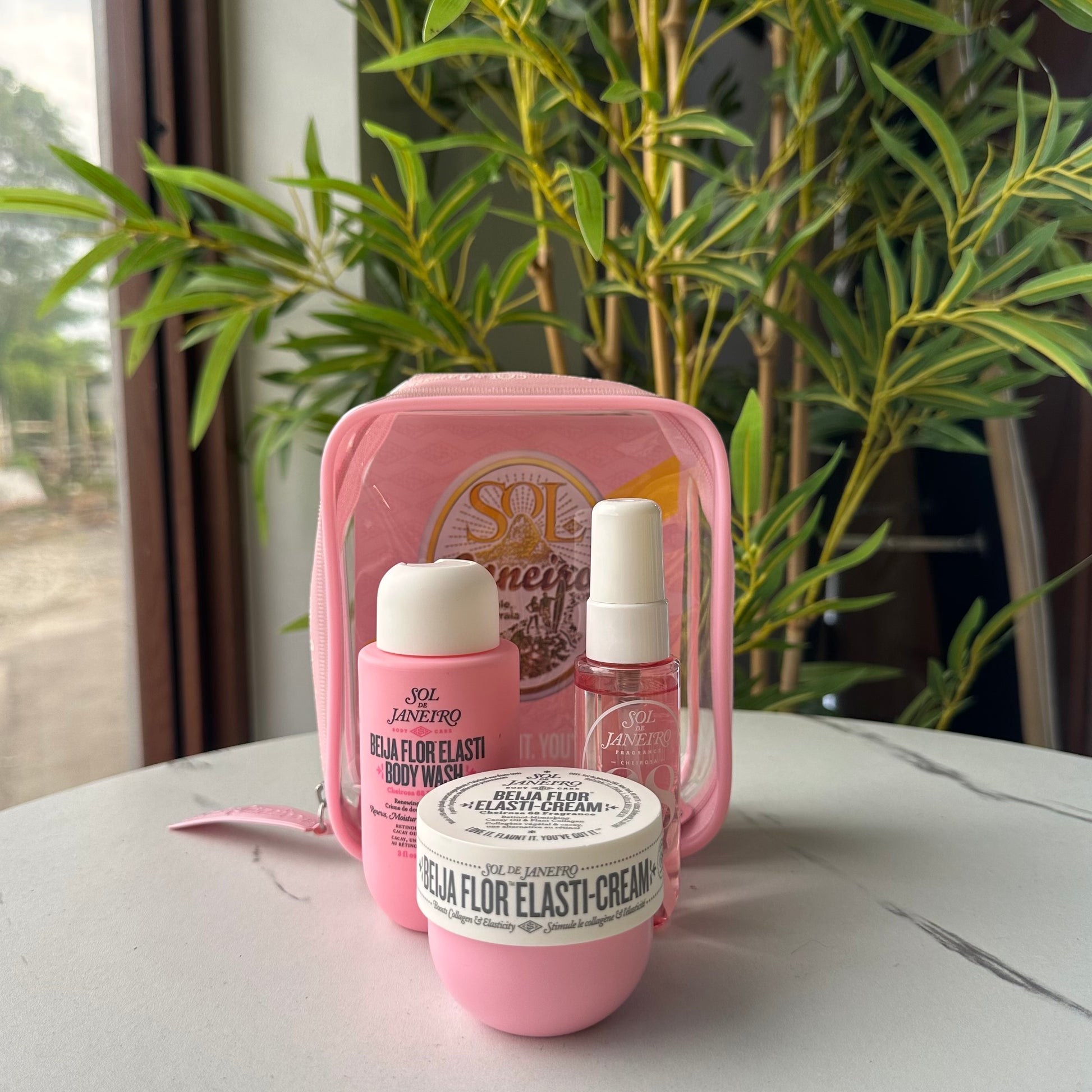 - This set includes the Beija Flor Renewing Body Wash, Beija Flor Elasti-Cream, and Cheirosa '68 Perfume Mist.